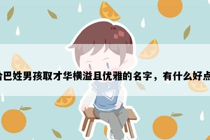 父母对孩子的期待藏在名字的每一个字里,一个才华横溢且优雅的名字,是这份期许最美好的诠释,伴随巴姓男孩成长。名字是伴随孩子一生的印记,对于巴姓男孩而言,一个才华横溢且优雅的名字不仅彰显家族风范,更寄托着父母的殷切期望,下面为您详细推荐。